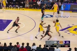 活力十足!布朗尼跟防釘板大帽奧利尼克 進(jìn)攻端撤步三分洞穿籃心