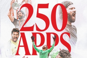 體育資訊2月12日訊 在本輪英超聯(lián)賽的一場(chǎng)比賽中,利物浦客場(chǎng)對(duì)陣桑德蘭,紅軍門(mén)將阿利松迎來(lái)了在利物浦的第250場(chǎng)聯(lián)賽出場(chǎng)。