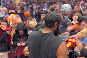賽前,哈登為眾多主場的小球迷們簽名。