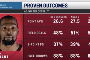 從左至右依次為生涯前6個賽季、中間6個賽季、最近6個賽季