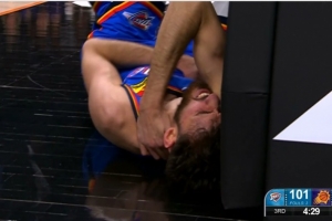 GIF-杰倫威突破撞到了切特 后者痛苦倒地&直接回更衣室 但光速回歸