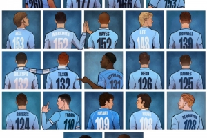 曼城官方社媒曬出了隊史射手榜情況,哈蘭德如今能夠并列第4位,想要追趕隊史射手榜榜首的阿圭羅仍需一段時間,阿根廷射手有260球入賬。