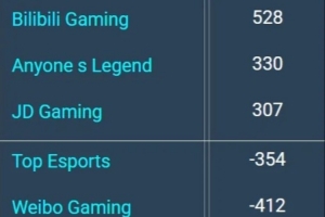 體育資訊2月13日訊 外網(wǎng)數(shù)據(jù)網(wǎng)站統(tǒng)計(jì)LPL第一賽段常規(guī)賽登峰組隊(duì)伍前15分鐘經(jīng)濟(jì)差:BLG第一528。