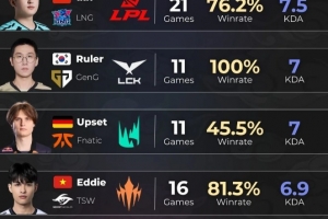 4.Eddie:16場(chǎng)比賽、81.3%勝率、6.9KDA;