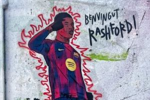 體育資訊7月21日訊 據(jù)西媒《每日體育報》報道,拉什福德身穿巴薩19號球衣的壁畫出現(xiàn)在巴塞羅那街頭。