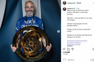 馬雷斯卡配文寫道:“以如此精彩的方式結(jié)束24/25賽季,這是一個(gè)漫長的旅程。我們做到了,我們再次以自己的奪冠!感謝球員們不懈的努力,以及全世界支持我們的球迷,感謝我的家人和朋友的支持?!?/p>