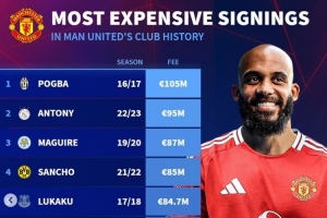 體育資訊7月22日訊 曼聯(lián)已經(jīng)官宣簽下布倫特福德前鋒布萊恩-姆貝莫,轉(zhuǎn)會市場也統(tǒng)計(jì)了曼聯(lián)隊(duì)史最貴引援情況,姆貝莫位列第8。