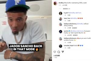 有博主在社媒上曬出了一段桑喬舞蹈的視頻,而球迷在評(píng)論區(qū)留言“每周維持30萬英鎊薪水后的心情”,這一留言得到了桑喬本人的回復(fù):“歐洲冠軍???兄弟,祝你有美好的一天????”,解釋這段視頻是在隨切爾西奪得歐協(xié)聯(lián)冠軍后拍的。