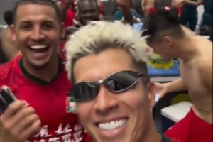 視頻中,河南隊外援納薩里奧戴著墨鏡領舞,全隊在更衣室又唱又跳慶祝勝利。