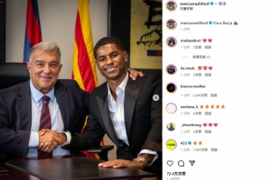 拉什福德先是曬出了自己和拉爾波塔的簽約照,并配文:“巴薩萬(wàn)歲!”