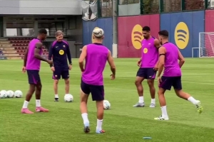 拉什福德租借加盟巴薩,參加球隊今天的合練,巴薩社媒曬出訓練視頻,配文:“拉什福德已經熟悉了我們的搶圈訓練?!?/p>
