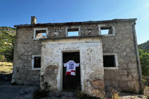 房子在1991年因戰(zhàn)火被摧毀,現(xiàn)在已經(jīng)成了一片廢墟。格瓦迪奧爾在房子的門前掛上了莫德里奇的球衣。