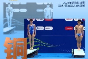 體育資訊7月30日訊 在剛剛結(jié)束的世錦賽跳水混雙三米板決賽中,中國(guó)組合李亞杰/程子龍獲得銅牌。