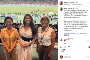 琳達寫道:“榮幸與高圓宮妃久子殿下及英國駐日大使茱莉亞-朗博頓共同見證利物浦奪得J聯(lián)賽世界挑戰(zhàn)杯冠軍?!?/p>