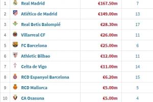 皇馬、馬競之后,排名第三的貝蒂斯目前只花費了2830萬歐,第四的比利亞雷亞爾花費2600萬歐。巴薩2500萬歐暫排第五,引進(jìn)了胡安-加西亞和拉什福德。