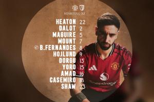 曼聯(lián)替補:1-巴因德爾、4-德里赫特、33-弗雷德里克森、26-海文、30-萊昂、65-穆羅、43-科利爾、38-杰克-弗萊徹、42-科內(nèi)、37-梅努、25-烏加特、70-曼塔托、32-奧比、56-威廉姆斯、德莫特-米