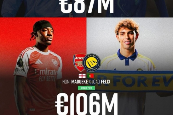 2023年1月和2024年8月,切爾西先后簽下馬杜埃凱、菲利克斯,轉(zhuǎn)會費(fèi)分別為3500萬歐元、5200萬歐元,合計8700萬歐。