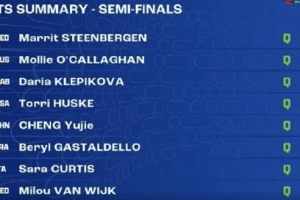 程玉潔游出53秒34排名第五晉級決賽,吳卿風(fēng)54秒32排名第十五無緣決賽。