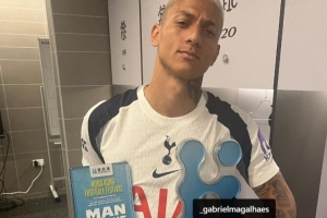 賽后,理查利森在個人社媒曬了他領(lǐng)取全場最佳球員的照片,并標(biāo)記了阿森納后衛(wèi)加布里埃爾。隨后,加布里埃爾更新社媒,曬出自己3次拿到英超北倫敦德比全場最佳的獎杯予以回?fù)簦舶亓死聿槔?/p>
