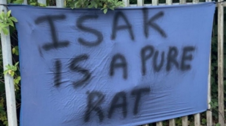 標語上寫著:Isak is a pure rat(伊薩克就是一純純的鼠輩)。rat也可以譯作叛徒,表示紐卡球迷對伊薩克的不滿。