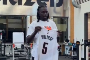 體育資訊8月1日訊 今天,開拓者官方曬出新援霍勒迪手持球衣的視頻。