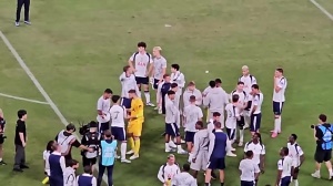 體育資訊8月1日訊 熱刺在昨晚的熱身賽1-0戰(zhàn)勝阿森納,賽后頒獎階段,不少隊友都要把隊長袖標給孫興慜戴上,但孫興慜一直在躲。
