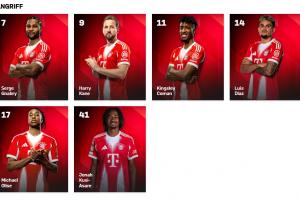 拜仁官網(wǎng)今日的鋒線名單↑