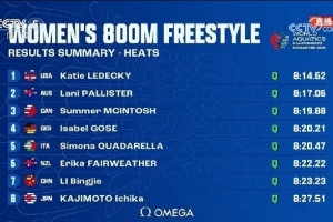 體育資訊8月1日訊 游泳世錦賽結(jié)束女子800米預(yù)賽爭奪,中國選手李冰潔晉級(jí)決賽,楊佩琪排名第九,無緣晉級(jí)。