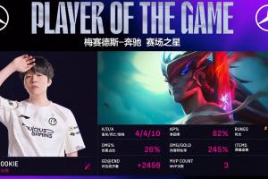 Rookie次局永恩以4/4/10的數(shù)據(jù)拿下MVP,他在比賽后期成為翻盤核心,高地1v4“向天再借30秒”拖至隊友復(fù)活防止被一波,團戰(zhàn)也有多次高光操作。