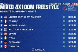 體育資訊8月2日訊 游泳世錦賽結束男女混合4x100米自由泳接力預賽爭奪,中國隊排名第十,無緣決賽。