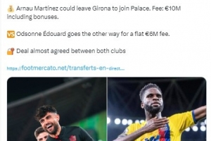 據(jù)悉阿諾-馬丁內(nèi)斯從赫羅納轉(zhuǎn)會(huì)至水晶宮,轉(zhuǎn)會(huì)費(fèi)為1000萬(wàn)歐元,包含獎(jiǎng)金條款。而愛(ài)德華則將以600萬(wàn)歐元的固定費(fèi)用加盟赫羅納,兩家俱樂(lè)部幾乎達(dá)成了一致。