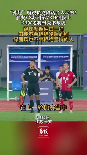 39歲的戴虎在上一輪比賽當(dāng)中,為淮安隊(duì)拿到首個(gè)客場(chǎng)三分,立下悍馬功勞,左手分秧苗,右腳傳希望,他以他的實(shí)際行動(dòng)告訴我們,踢球就像種田一樣,田埂不會(huì)拒絕晚熟的稻,而綠茵場(chǎng)也不會(huì)拒絕堅(jiān)持的人。其實(shí)在這場(chǎng)比賽當(dāng)中,我更想說(shuō)的是,我們蘇超給了每一位熱愛(ài)足球的人追逐夢(mèng)想的舞臺(tái)。