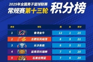 【積分榜】2025年NBL常規(guī)賽第13輪全部戰(zhàn)罷。