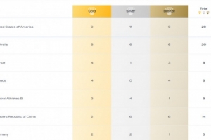 法國隊4金第三、加拿大隊4金第四,中立運動員B隊3金第五。