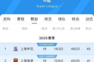 國(guó)安在15輪結(jié)束后加冕中超半程冠軍,從第17輪1-3不敵申花至今聯(lián)賽遭遇1平2負(fù),排名降至第4。