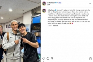 體育資訊8月4日訊 今日,熱刺前鋒理查利森在個人Ins中告別了隊友孫興慜。