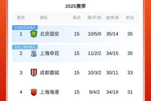 體育資訊06月26日訊 中超第15輪結(jié)束,賽季正式過半,積分榜情況如下