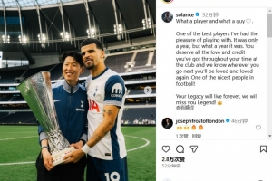 體育資訊8月4日訊 熱刺隊長孫興慜確定離隊,韓國人預(yù)計將加盟洛杉磯FC。在社交媒體上,孫興慜的鋒線搭檔索蘭克進(jìn)行了告別。