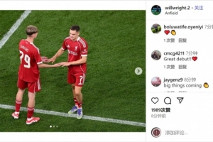 體育資訊8月5日訊 利物浦新援威爾-賴特更新社媒動態(tài),曬出在熱身賽中替補出場的照片。
