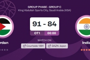 體育資訊8月5日訊 男籃亞洲杯小組賽,約旦91-84加時(shí)力克印度。