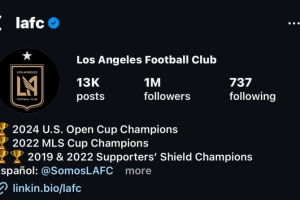 體育資訊8月6日訊 據(jù)記者Favian Renkel報(bào)道,洛杉磯FC俱樂(lè)部ins粉絲數(shù)量突破100萬(wàn)。