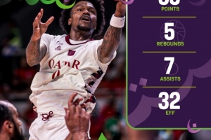 不過卡塔爾男籃的歸化球員、上海外援古德溫打出精彩表現(xiàn),出戰(zhàn)35分鐘09秒,17投10中,三分9投4中,罰球11罰9中,砍下33分5籃板7助攻2搶斷,不過也有6次失誤。