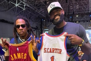 詹姆斯簽名的是自己騎士時期的23號球衣,Jay-Z簽名的是尼克斯配色的“S.Carter”球衣,S.Carter是Jay-Z一張專輯名包含的名字。