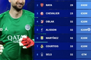 體育資訊8月7日訊 2025年雅辛獎(jiǎng)10人候選名單公布,以下為10人德轉(zhuǎn)身價(jià)榜: