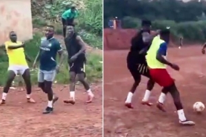 體育資訊6月27日訊 近日,曼聯(lián)門將奧納納回到了家鄉(xiāng)喀麥隆度假,期間他與童年好友一起在野球上踢球。