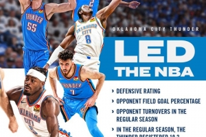 體育資訊8月8日訊 今天,雷霆在官推上曬圖回顧了球隊(duì)上賽季的一些防守?cái)?shù)據(jù)。
