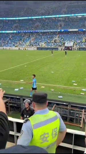 根據(jù)現(xiàn)場(chǎng)拍攝畫面,有情緒激動(dòng)的球迷跳下看臺(tái)。