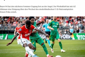 波庫(kù)目前效力于阿爾克馬爾,兩家俱樂部已經(jīng)就轉(zhuǎn)會(huì)事宜達(dá)成一致,球員只需通過(guò)體檢就可加盟。這名21歲的邊鋒將和勒沃庫(kù)森簽約至2030年,轉(zhuǎn)會(huì)費(fèi)約為1000萬(wàn)歐。