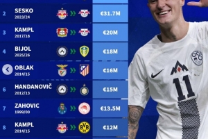 體育資訊8月9日訊 曼聯(lián)官方宣布塞斯科加盟,固定轉(zhuǎn)會(huì)費(fèi)7650萬(wàn)歐。德轉(zhuǎn)也盤(pán)點(diǎn)了歷史上斯洛文尼亞球員轉(zhuǎn)會(huì)費(fèi)榜單,其中塞斯科高居榜首,具體如下:
