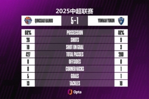 26/10 - 青島海牛本場比賽26次射門10次射正,期望進球值為3.93,都刷新有數(shù)據(jù)統(tǒng)計以來(自2012年),球隊單場中超紀(jì)錄。